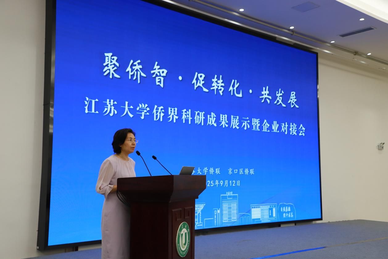 9月12日,“聚侨智・促转化・共发展”beat365唯一官网侨界科研成果展示暨企业对接会举行。江苏省侨联党组成员、副主席兼秘书长张霓,江苏省侨联基层建设部(权益保障部)四级调研员朱安安,校党委常委、副校长任旭东,镇江市侨联党组书记、主席王永新,镇江市工信局党委委员、副局长朱明珠,校党委常委、宣传部部长、统战部部长吴麟麟出席对接会。活动由校党委统战部常务副部长金玉成主持。