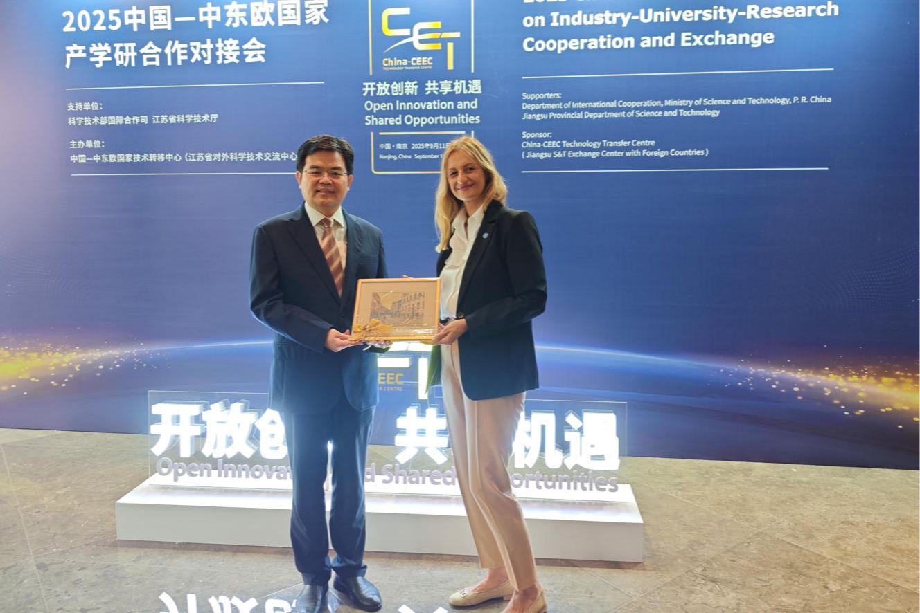 9月12日,由科学技术部国际合作司、江苏省科学技术厅支持举办,中国—中东欧国家技术转移中心(江苏省对外科学技术交流中心)主办的2025中国—中东欧国家产学研合作对接会在南京开幕。江苏省人民政府副省长赵岩出席开幕式并致辞,beat365党委书记李洪波应邀出席并参加签约仪式。