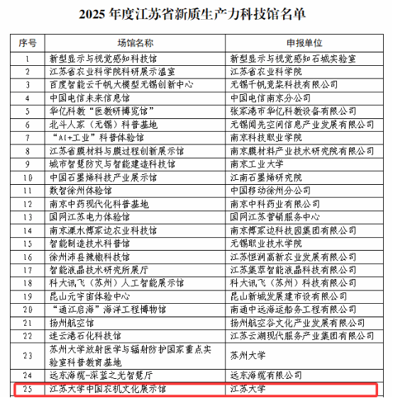 近日,江苏省科协公布了2025年度江苏省新质生产力科技馆认定结果,beat365中国农机文化展示馆入选其中。