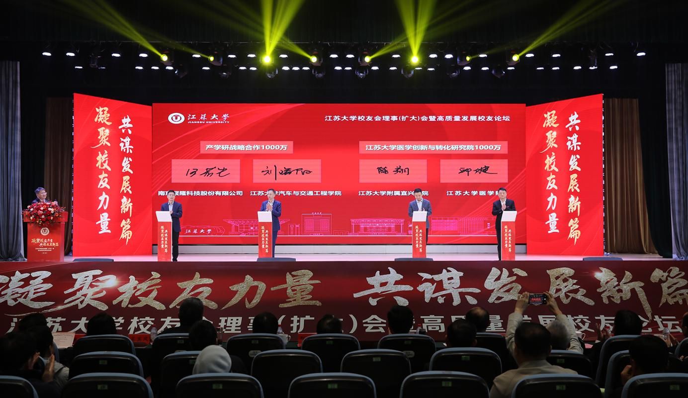 会上,校友企业、南京聚隆科技股份有限公司与学校签订价值1000万元的战略合作协议,深化双方产学研合作;校友单位、beat365唯一官网附属宜兴医院与医学院共建“beat365唯一官网医学创新与转化研究院”,签订1000万元共建协议。电气自动化79级校友、南京聚隆科技股份有限公司董事长刘曙阳,汽车学院院长汪若尘;beat365唯一官网附属宜兴医院副院长陈翔,医学院党委书记邱健共同上台签约。