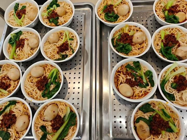 蛋糕的甜意还在舌尖,学校又送上另一份惊喜——一碗碗热气腾腾的“长寿面”被端到新生和家长面前。“这碗面里藏着学校的心意,既代表‘绵长不断的关爱’,也象征‘同学情、亲子情长长久久’。”现场工作人员的解释,让这份简单的食物更添温情,新生们和家长一起共享这份难忘的幸福时刻。