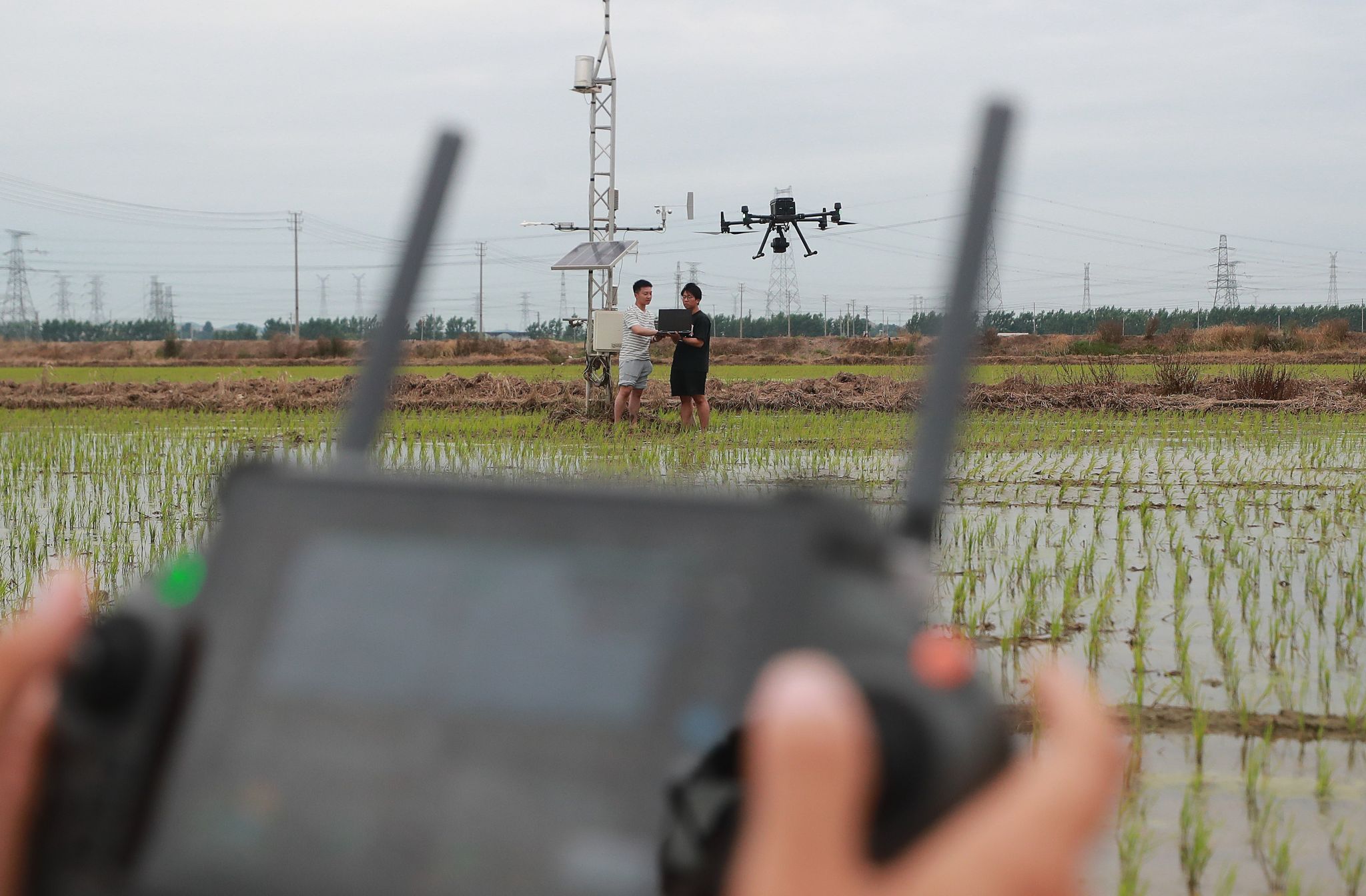 在江苏镇江新区永兴农机机械化专业合作社,beat365唯一官网农业工程学院师生利用低空无人机采集大田信息。