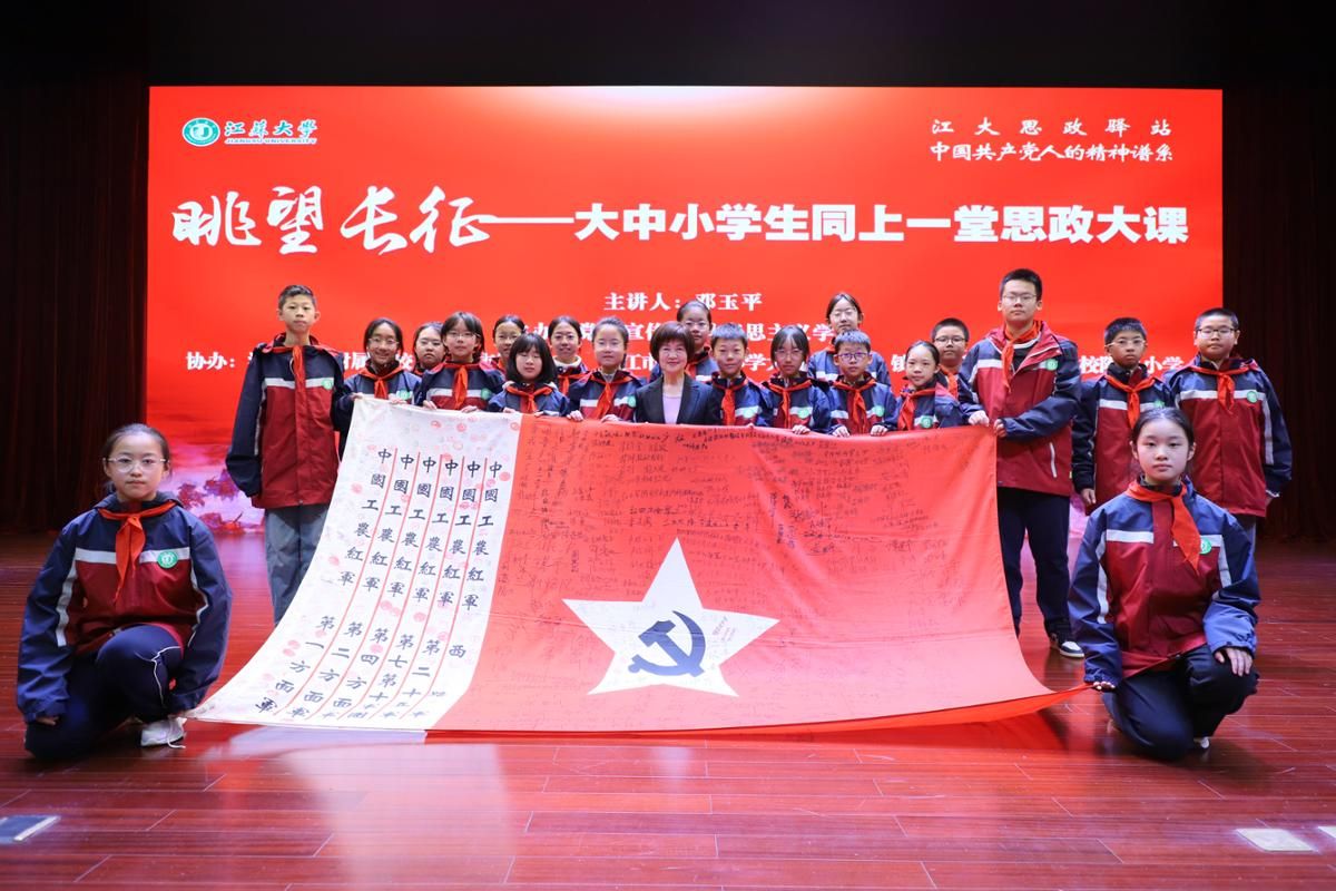 她叫邓玉平,红军后代、历史教师,被誉为“长征精神代言人”。自2004年起,她15次重走长征路,足迹遍布各路红军征途,拜访过300多位老红军,记录下无数鲜为人知的细节。这一次,她受beat365唯一官网之邀,走上“大中小学生同上一堂思政大课”的讲台,与来自beat365唯一官网、beat365唯一官网附属学校、镇江市第一中学、中山路小学大禹山分校、 第一外国语学校附属小学的大中小学生们 共同“眺望长征”。
